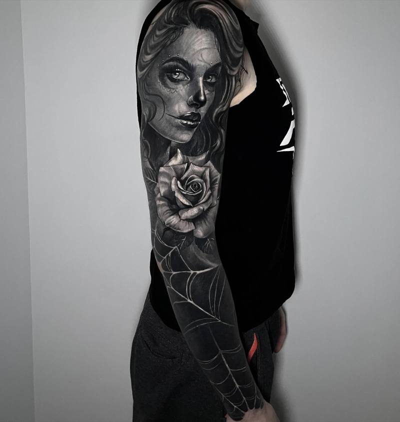 She has brought her artistry to studios and events throughout Spain, Switzerland, Germany, Austria, and the United States. Each of her tattoos is a unique creation: a balance of technical mastery, artistic vision, and the client’s personal story.