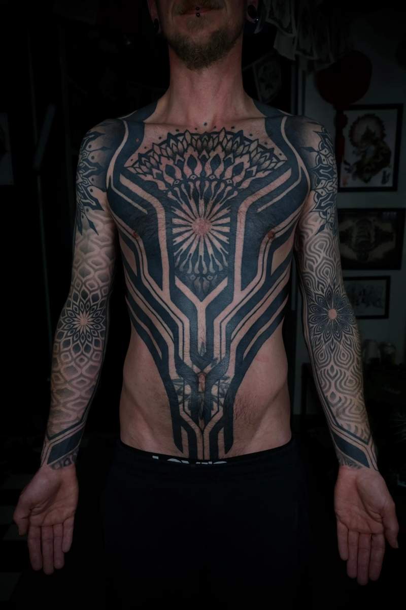 Originally born in Switzerland, I emigrated from my country in 2013 to delve deeper into the introspection of artistic expression and to strive for freedom and independence from mass society. I lived and travelled in various parts of Asia for five years, where in 2015 my journey as a tattoo artist began in northern Thailand.
