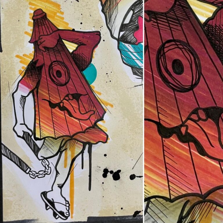 His relationship with Tattoo officially began in 2007, and his days as a graphic designer and graffiti artist are apparent throughout his work. His signature style combines graphic shapes, sketching technics, abstract forms, strict lines, graffiti textures and with an outstanding use of colour in a technique that resembles watercolour effect. The combination of these elements create a unique graphic abstract watercolor result.