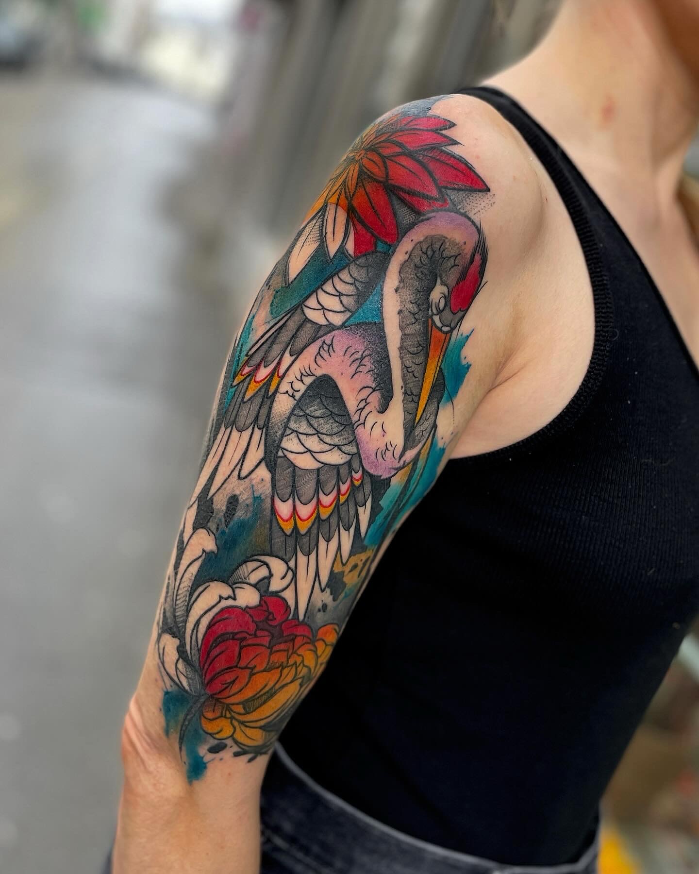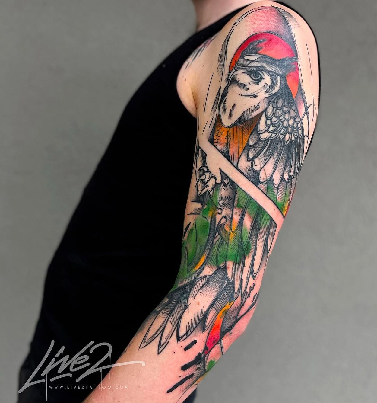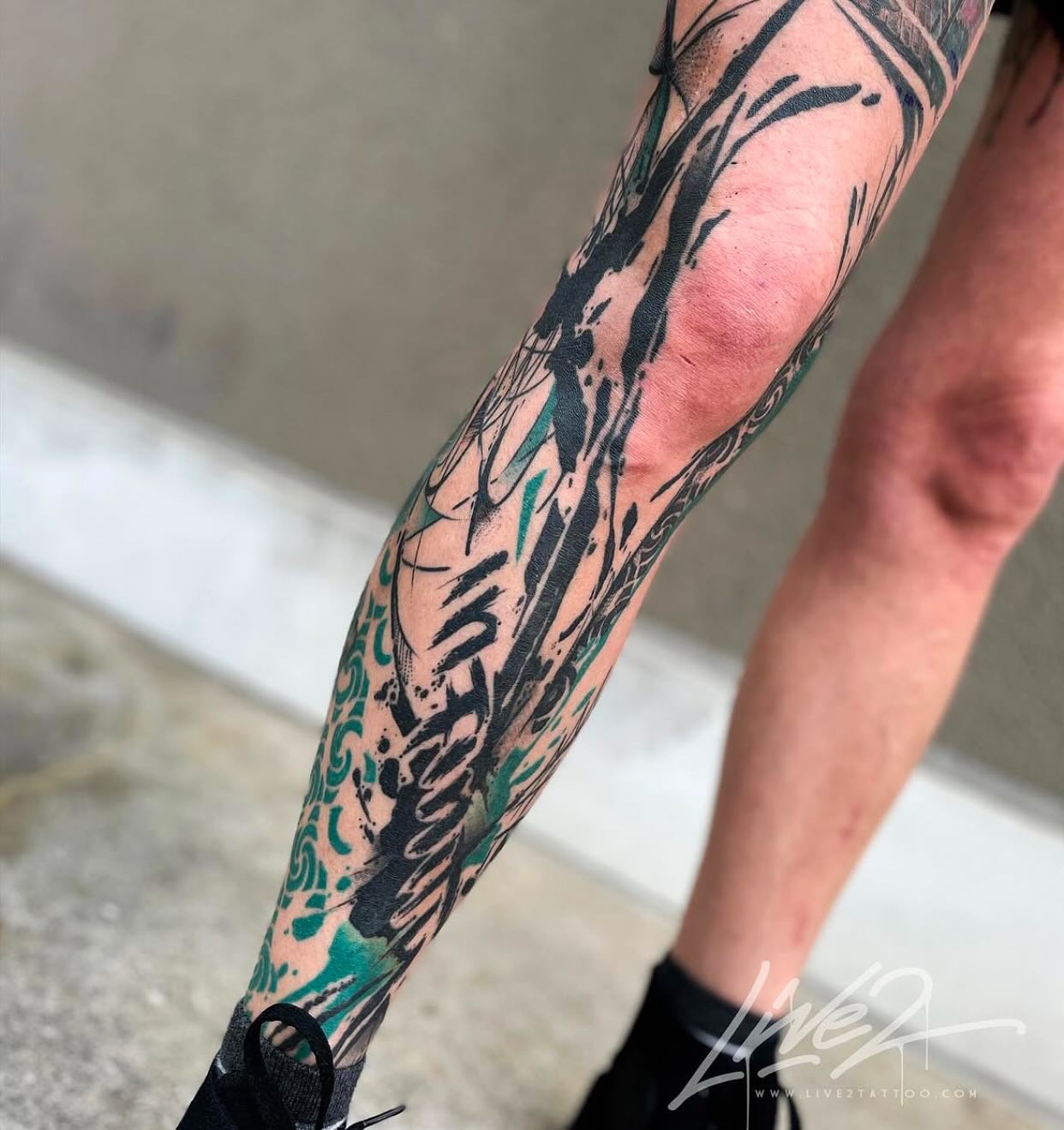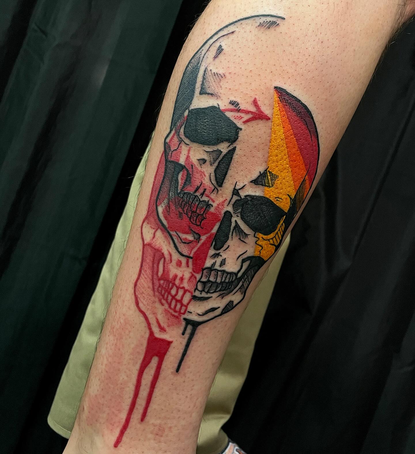 His relationship with Tattoo officially began in 2007, and his days as a graphic designer and graffiti artist are apparent throughout his work. His signature style combines graphic shapes, sketching technics, abstract forms, strict lines, graffiti textures and with an outstanding use of colour in a technique that resembles watercolour effect. The combination of these elements create a unique graphic abstract watercolor result.