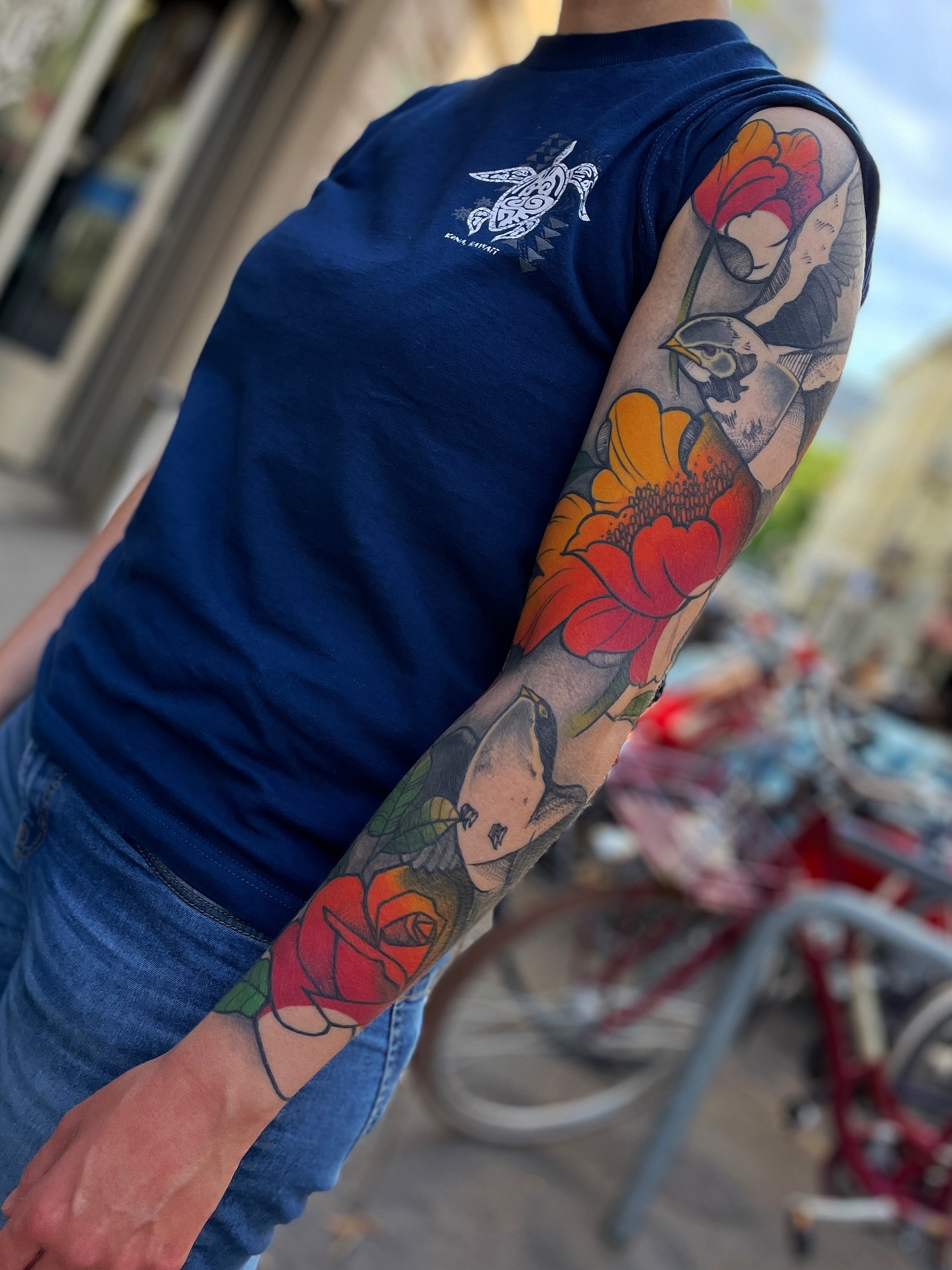 An awarded artist, he is a frequent guest in Tattoo Conventions around the world. He currently resides in Zurich and is a member and owner of Switzerland’s tattoo parlour, The Burning Eye Tattoo.