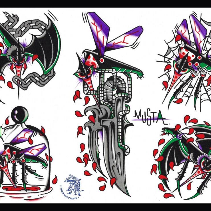 Musta now resides in Zurich at The Burning Eye Tattoo Studio, where he continues to refine classic language through a modern lens, with traditional foundations, modern execution, and a distinctly illustrative, folk, and funky personality.
