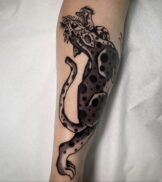 Currently working at The Burning Eye Tattoo in Zürich, PERLAZONE is also a frequent guest artist at shops across Europe. His signature approach to freehand tattooing allows him to craft designs that perfectly flow with the body’s shape, creating a personalised and impactful experience for each client. PERLAZONE’s work is driven by passion, respect, and a commitment to delivering tattoos that are as unique as the people wearing them.